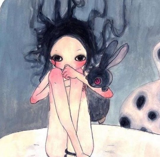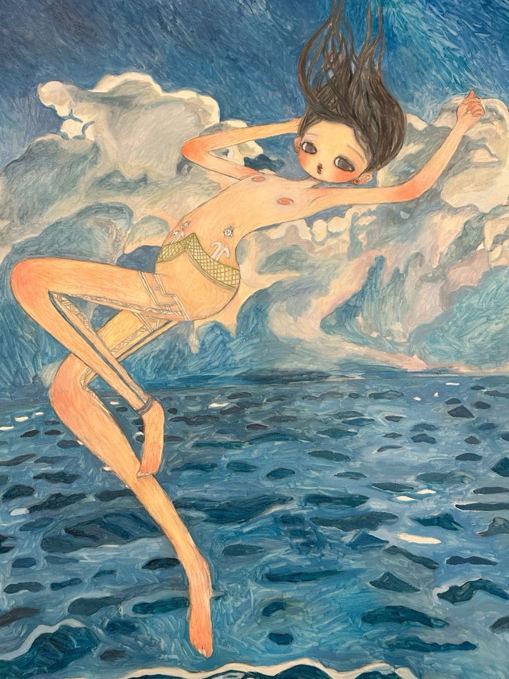 A key motif in her work, however, is the presence of androgynous girls, decorated with nude bodies, large eyes, elongated proportions, and soft skin.