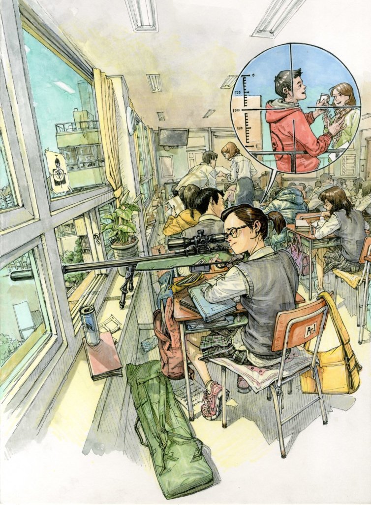 It’s a shame because I only found out about Kim Jung Gi after his death in 2022, which inspired me to do more research on his art. I soon found out that one extraordinary fact: he drew without a reference! Kim Jung Gi was born with an extremely powerful memory, and during his time in the South Korean army, he memorized the structures of many different weapons and vehicles. These artillery elements appeared frequently in his work; see if you can spot them!