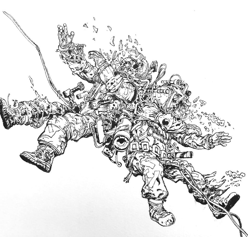 .⋆。⋆༶⋆˙⊹ Kim Jung Gi was a South Korean comic artist whose work is instantly recognizable. His drawings are filled with impossible details, complex perspectives, and fascinating character designs. He was able to perform live illustrations at incredible speed, with subject matter varying from superheroes, artillery, animals, and cultural references.